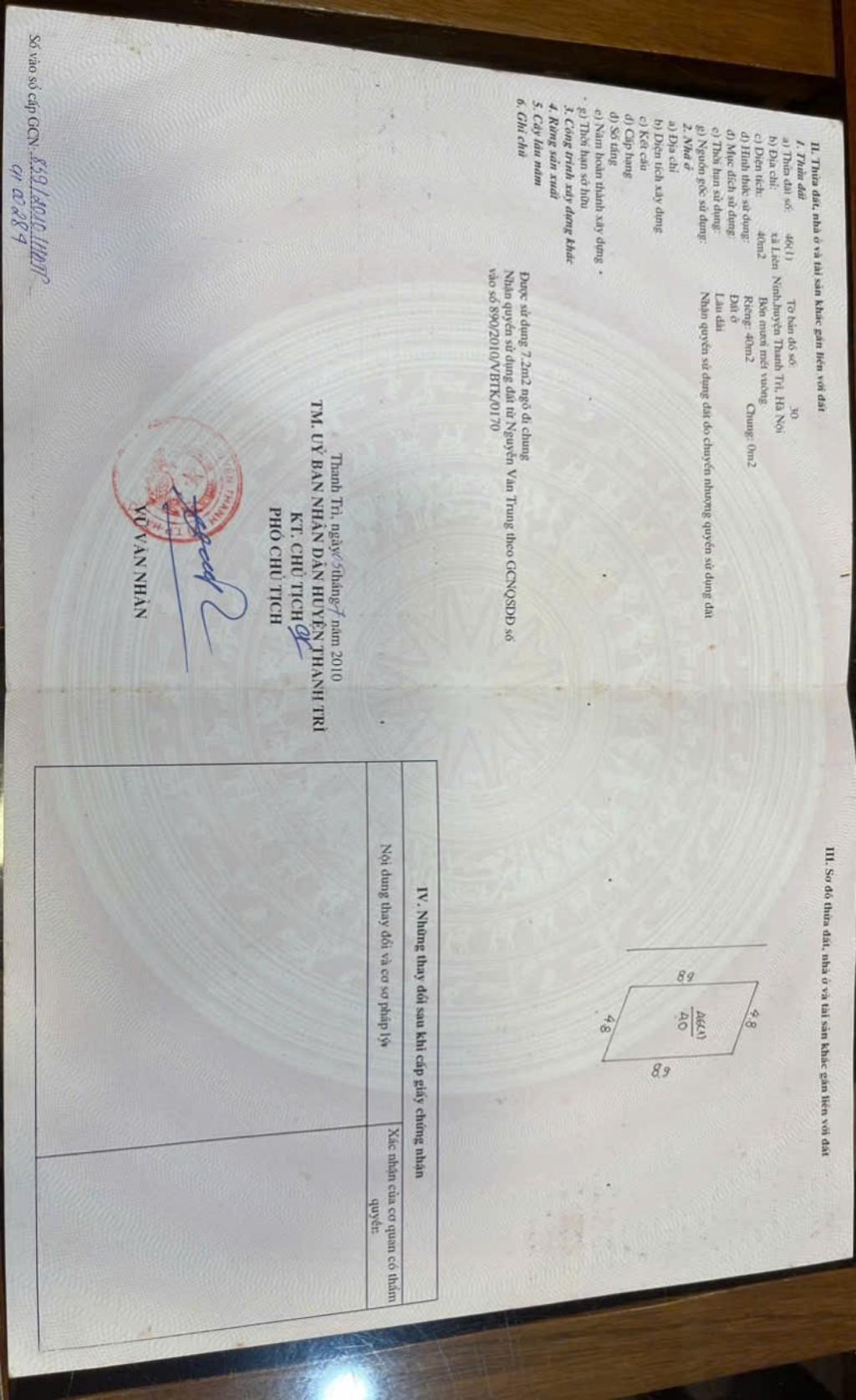 Diện tích: 40m² – Pháp lý: Sổ đỏ lâu dài – Giao dịch ngay